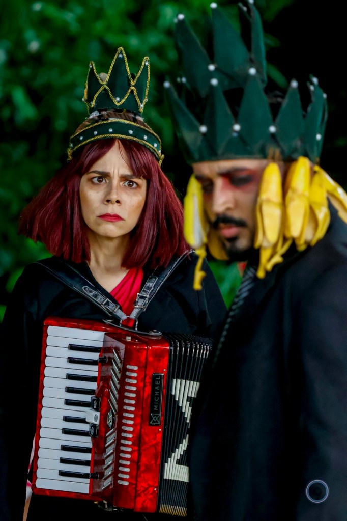 “UBU: o que é bom tem que continuar!” é uma criação coletiva dos grupos Clowns de Shakespeare, Facetas e Asavessa, inspirada no clássico “Ubu Rei”, de Alfred Jarry. A farsa se passa em “Embustônia”, uma terra imaginária com um toque bem latino-americano, onde personagens grotescos e hilários lutam pelo poder em meio a sátiras políticas. Desde sua estreia em 2022, o espetáculo já passou por mais de 100 palcos no Brasil e na América Latina.